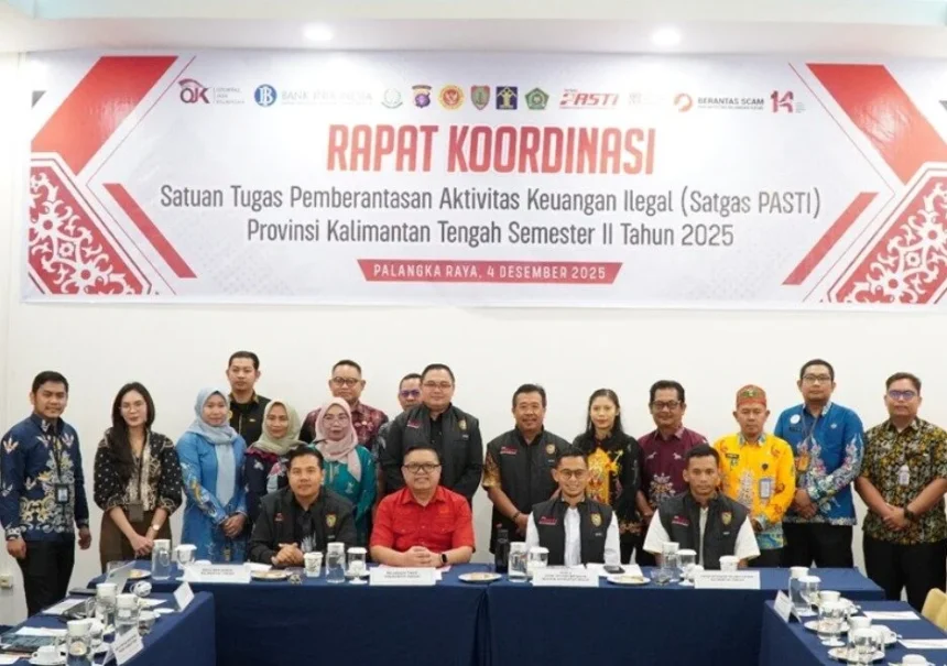 Palangka Raya, Kantamedia.com – Rapat Koordinasi Satgas Pemberantasan Aktivitas Keuangan Ilegal (Satgas PASTI) Semester II Tahun 2025 digelar di Palangka Raya, Kamis (4/12/2025). Rapat bertujuan memperkuat koordinasi lintas lembaga dalam menangani maraknya penipuan digital, investasi ilegal, hingga pinjaman online (pinjol) ilegal di Kalteng.