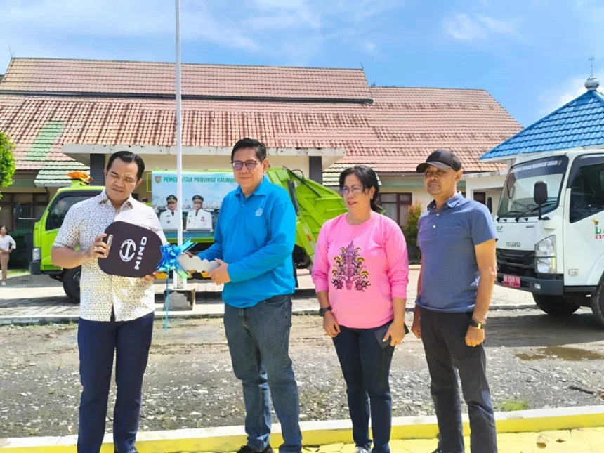 Bantuan yang diterima meliputi 1 unit Compactor, 1 unit Dump Truck, dan 4 unit Arm Roll Truck, yang diserahkan secara resmi di halaman Kantor DLH Pulang Pisau.